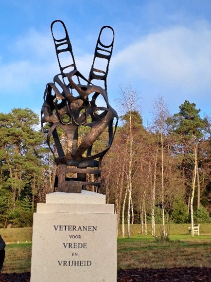 Op 26 november jl. was ik namens de BOSS aanwezig bij de onthulling van het veteranenmonument op de veteranenbegraafplaats in Loenen. Het monument sluit aan bij de oorspronkelijke wens van de veteranengemeenschap om één nationale plek te hebben waar álle overleden veteranen worden herdacht, ongeacht waar ze begraven of verstrooid zijn. Het bronzen monument is ruim drie meter hoog en is geplaatst op een sokkel van dezelfde natuursteen die wordt gebruikt voor de grafstenen op de begraafplaats Het is ontworpen door beeldhouwer en veteraan Jan-Willem van Oldeneel en stelt een opengewerkte hand voor die het V-teken maakt.